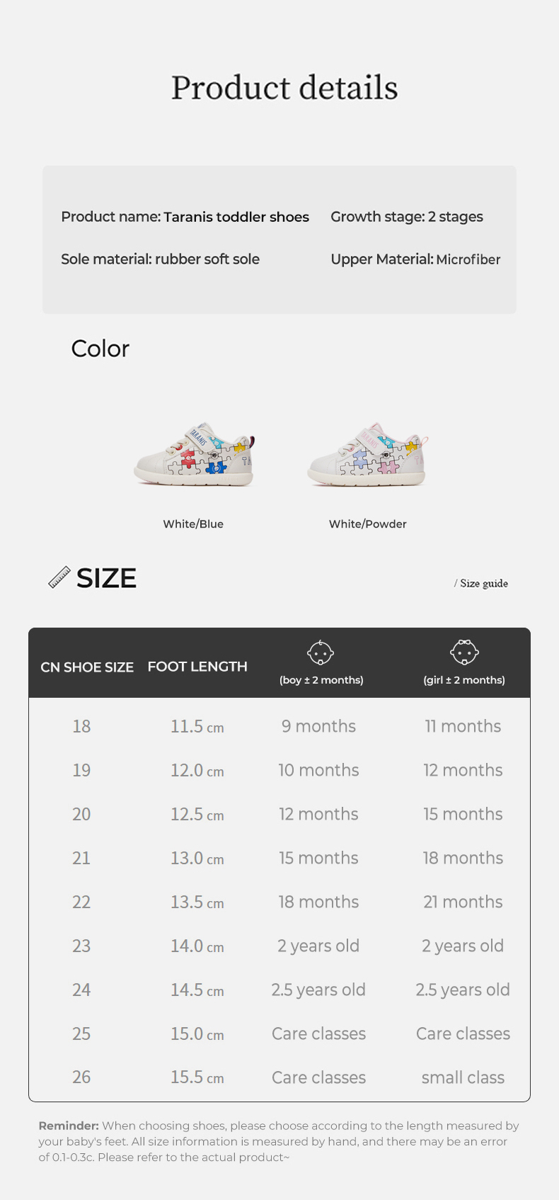 Size: 18, 21, 22, 23, 24, 25, 26, 19, 20