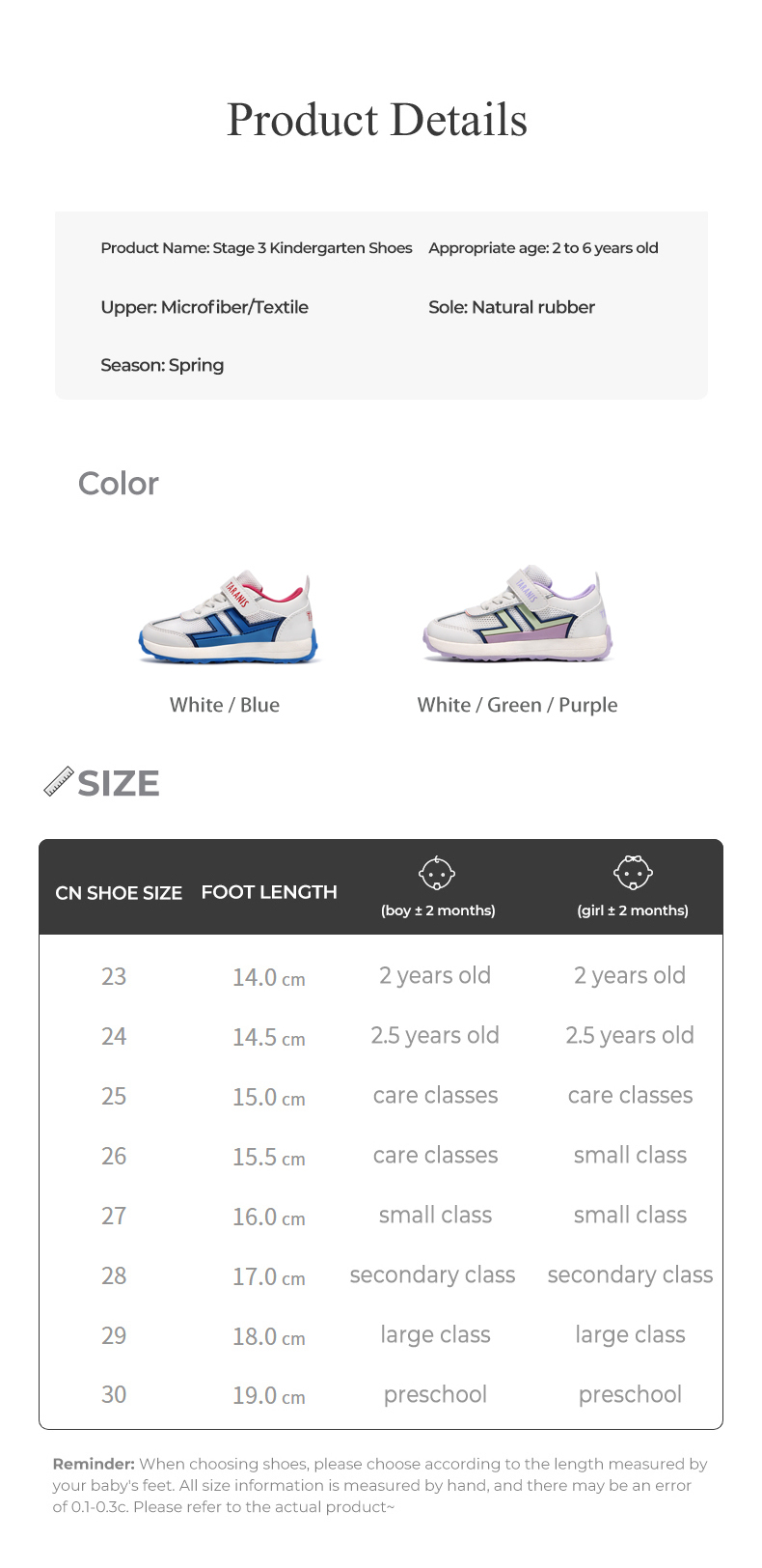 Size: 23 size fit foot length 14.0cm 24 size fit foot length 14.5cm 25 size fit foot length 15.0cm 26 size fit foot length 15.5cm 27 size fit foot length 16.5cm 28 size fit foot length 17.0cm 29 size fit foot length 18.0cm 30 size Suitable for foot length 19.0cm