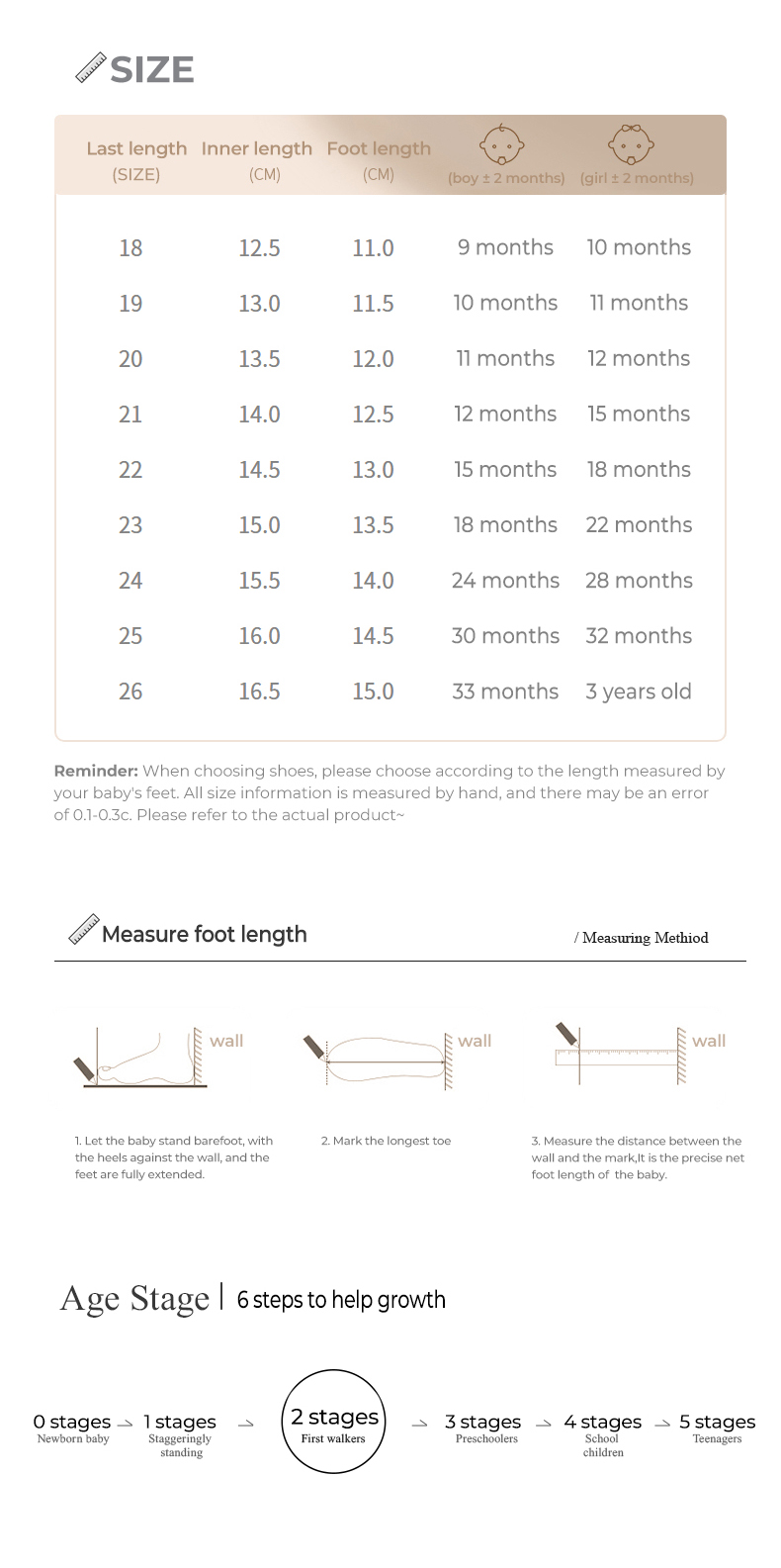 Size: 18 yard fit foot length 11.0 Inside 12.5 19 yard fit foot length 11.5 inside 13.0 20 yard fit foot length 12.0 Inside 13.5 21 yard fit foot length 12.5 inside 14.0 22 yard fit foot length 13.0 Inside 14.5 23 yard fit foot length 13.5 inside 15.0 24 yard fit foot length Fit Foot length 14.0 inside 15.5 25 yard fit foot length 14.5 inside 16.0 26 yard fit foot length 15.0 inside 16.5